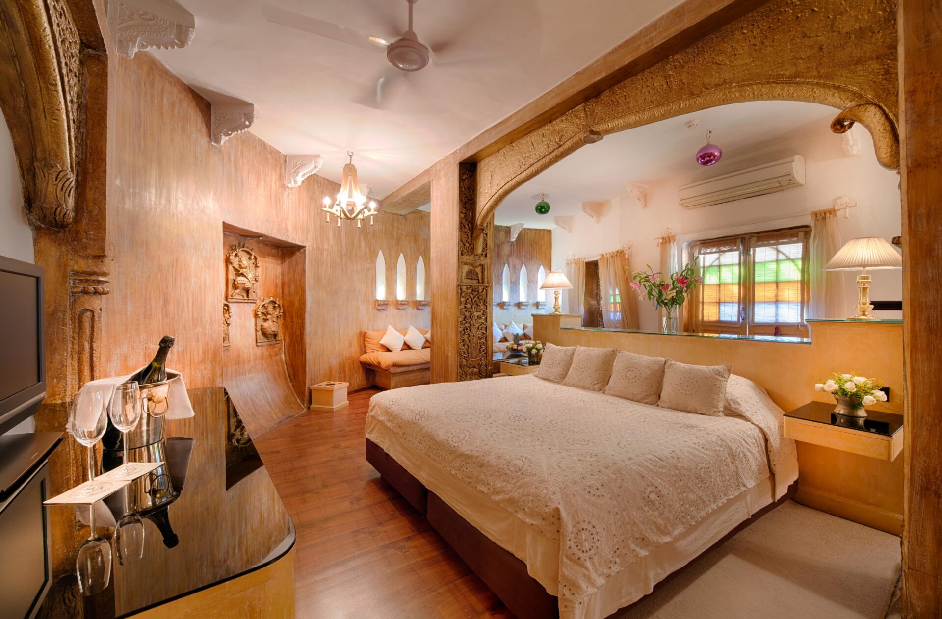 Royal Suite-1 Bedroom Garden View:One of the personal chambers of Maharaja Of Jodhpur. The décor which transports to the bygone era of the royalty. These are 1 room suites divided into a living area and a bedroom.